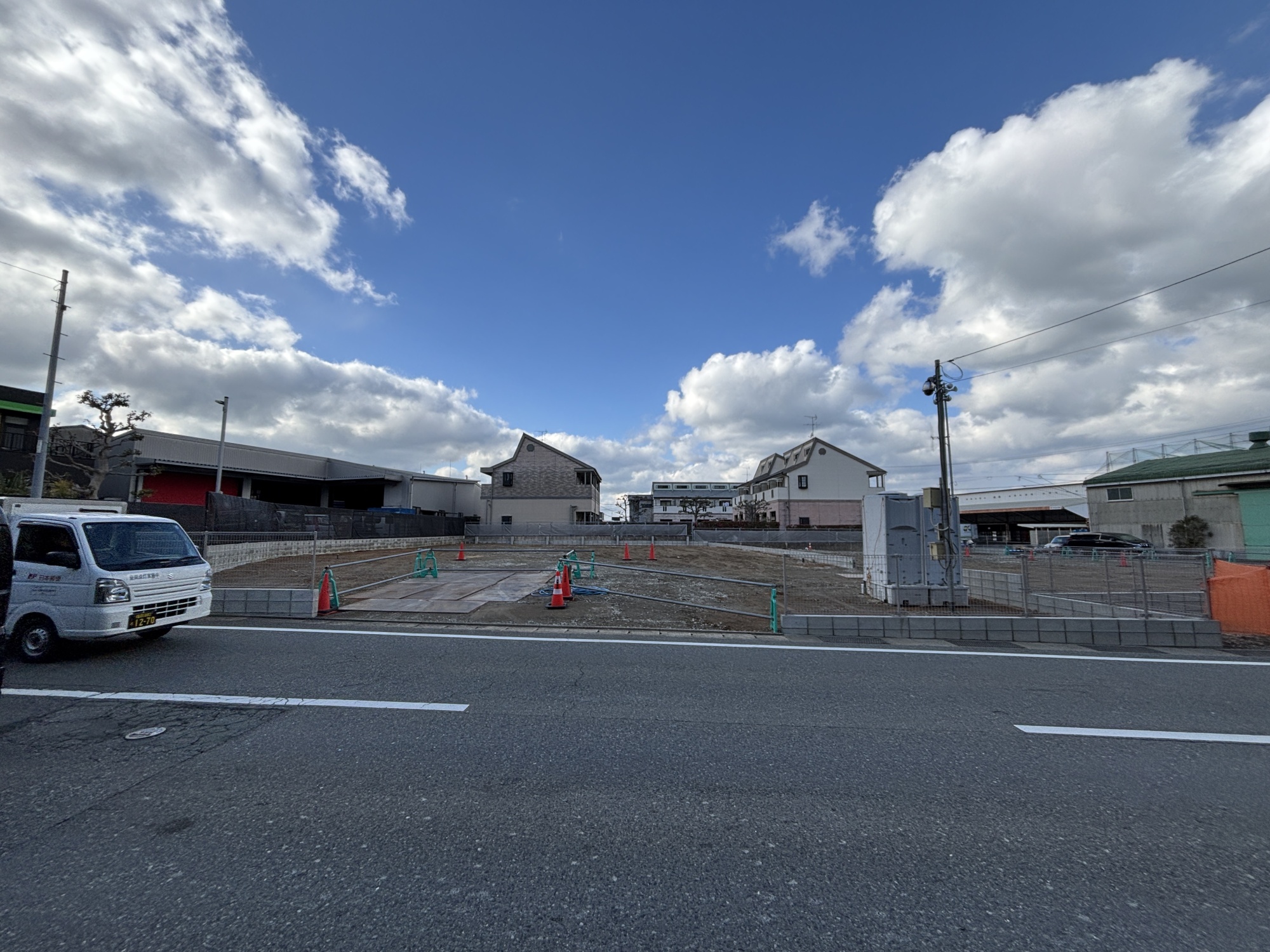 (仮称)新宮町原上貸倉庫AB棟新築工事 2026/01/28 未分類 新宮町に貸倉庫(オフィスストレージ)を作っています 2026年7月31日完成です、現在周囲のブロック工事とフェンス工事が終わっています