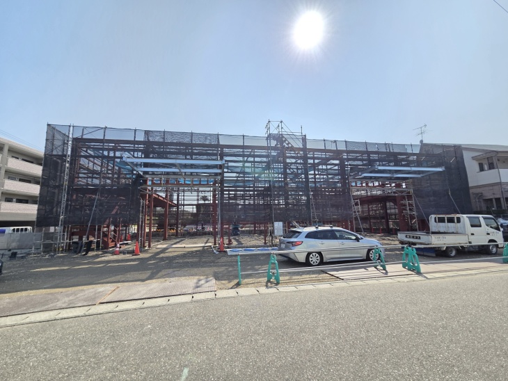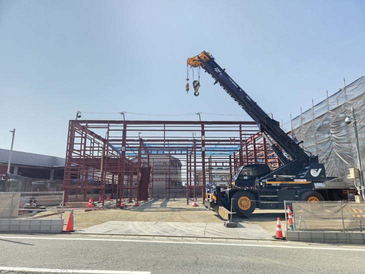 現在鉄骨建て方ちゅうです