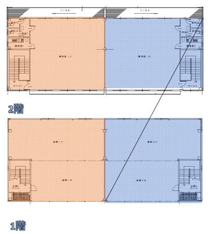| 専有面積 | 1階倉庫:149.50㎡ 2階事務所 130.00㎡ 計:279.50㎡ |